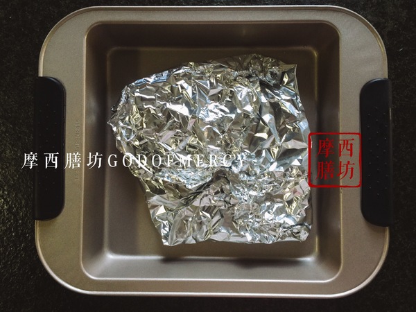 11.小心的將錫紙折起,盡量的包裹嚴(yán)實,隙縫捏緊即可。
