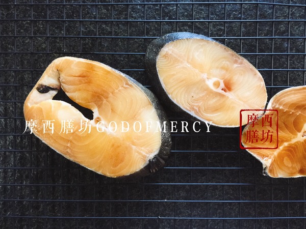 9. 腌制好的阿拉斯加黑鱈魚放在網(wǎng)架上,將其晾干。