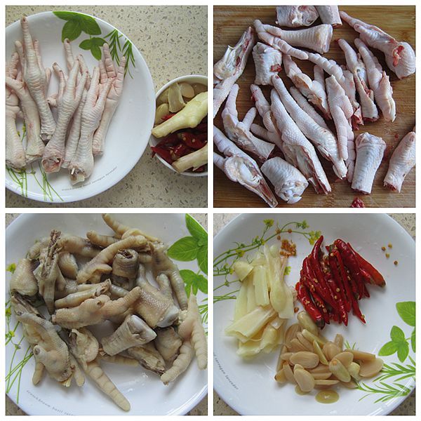雞爪、泡椒、泡嫩姜、泡大蒜、生抽、鹽、料酒。