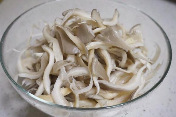 1、平菇洗凈后手撕成條狀,菌類都很軟,完全不用刀切。