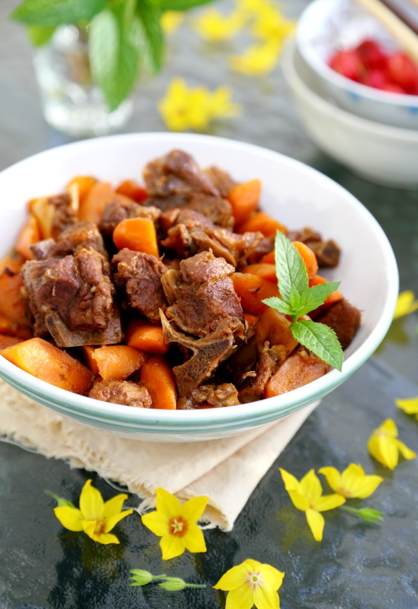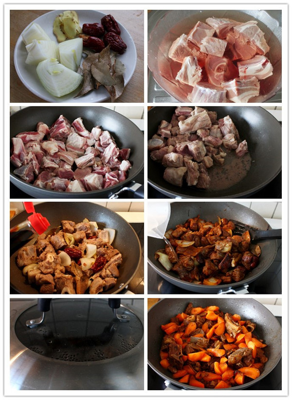 材料:帶骨羊肉1000克、胡蘿卜700克、香葉6片、紅棗4顆、洋蔥100克、姜15克