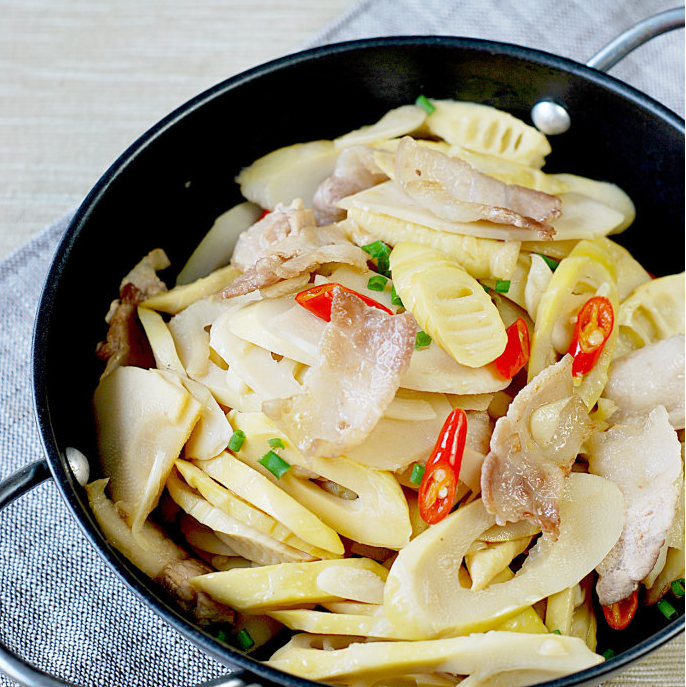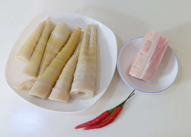 水煮春筍300克、五花肉200克。