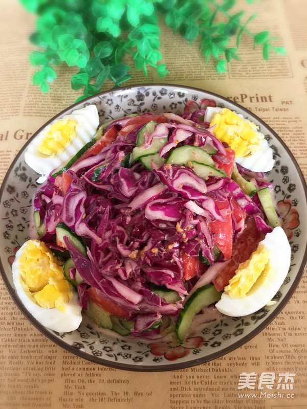 紫甘藍(lán)2片 雞蛋1個(gè) 番茄1個(gè) 黃瓜半個(gè)