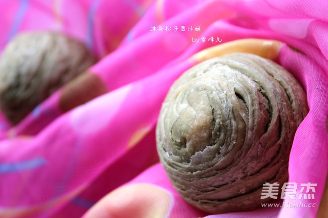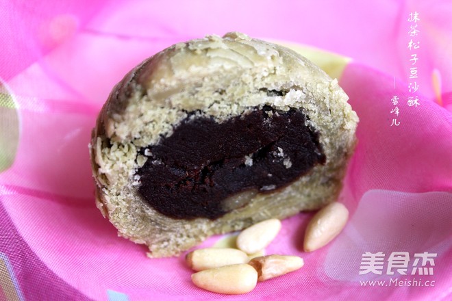 油酥低筋面粉150克 油酥玉米油65克 抹茶粉5克 豆沙餡少許 松子少許