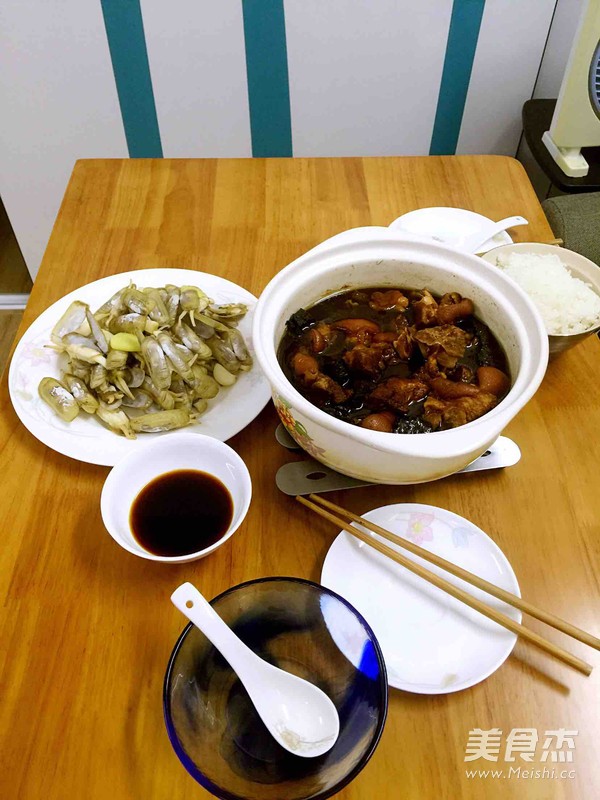 聽人說,三伏天吃豬蹄可以養(yǎng)生,所以就有了這生地燉豬蹄。