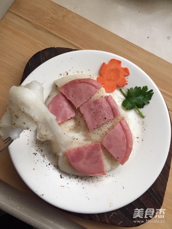 3.放糍粑,在糍粑的上面同樣撒上適量的椒鹽和黑胡椒粉