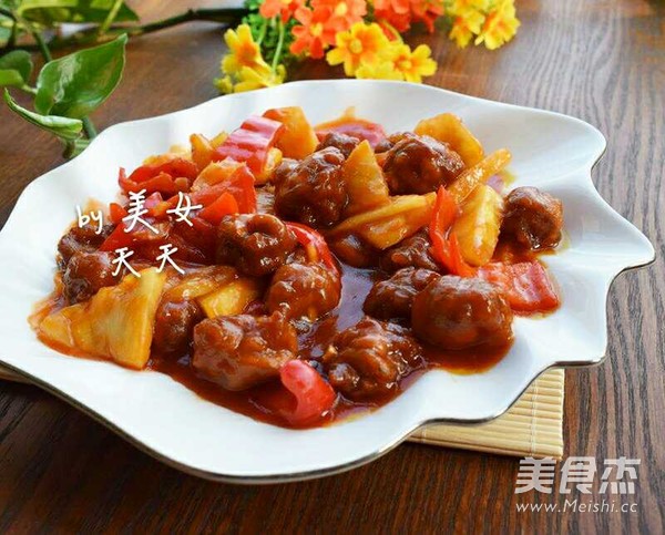 1、菠蘿事先要用淡鹽水浸泡30分鐘去澀; 2、炸肉時(shí)火不能太大不然會(huì)外焦里生; 3、配菜辣椒最好紅綠都有所謂的紅花配綠葉。