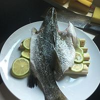 4. 魚處理好洗干凈以后中間剖開,內(nèi)外摸點(diǎn)鹽,然后像這樣放在檸檬和香茅上。這樣比較好熟,蒸的時(shí)間短些。當(dāng)然你不喜歡也沒關(guān)系,按照自己喜好來就好。如果你的魚比較大,肉比較厚可以在肉厚的地方劃幾刀