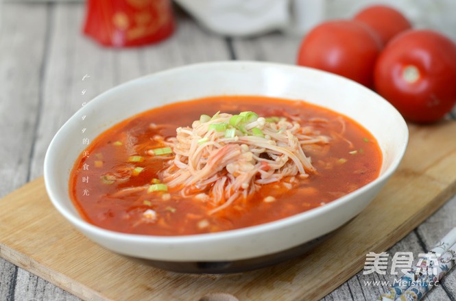 金針菇氨基酸的含量非常豐富,高于一般菇類,尤其是賴氨酸的含量特別高,一般人群均可食用。適合氣血不足、營養(yǎng)不良的老人、兒童、癌癥患者、肝臟病及胃、腸道潰瘍、心腦血管疾病患者食用。這道茄汁金針菇,口感酸辣開胃,是一道非常適合夏天食用的開胃菜。