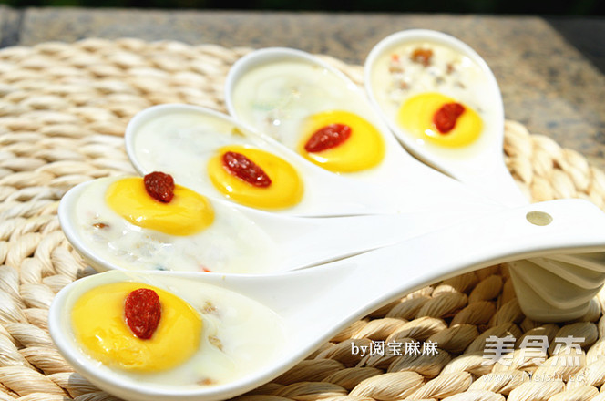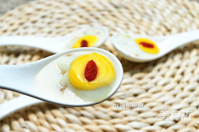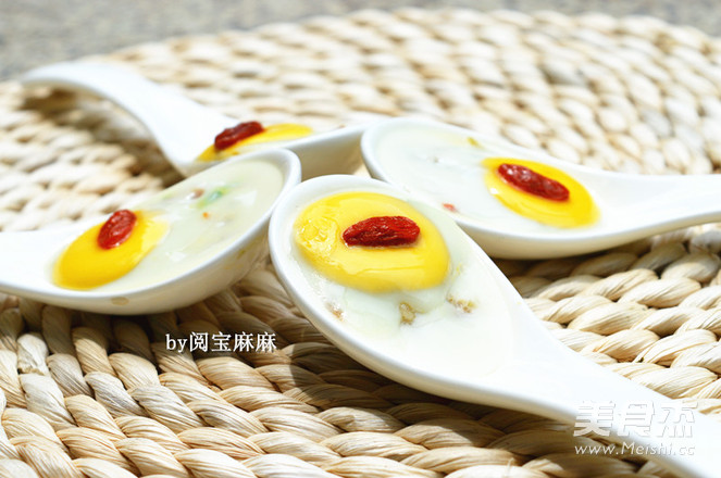 6.依次在每個勺子中打入一個鵪鶉蛋;(如圖)