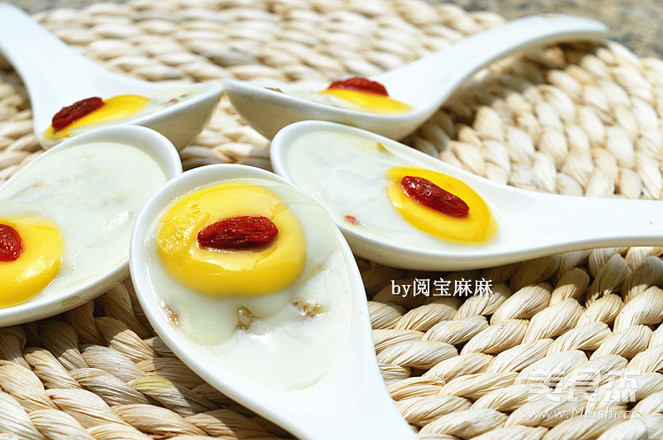7.送入蒸箱中層,長按開機鍵,進入默認烹飪選擇蛋類,然后按啟動鍵,開始烹飪,聽到蜂鳴聲時,就說明蒸好啦!(家里沒有蒸箱的就用蒸鍋蒸20分鐘即可?。?/p>