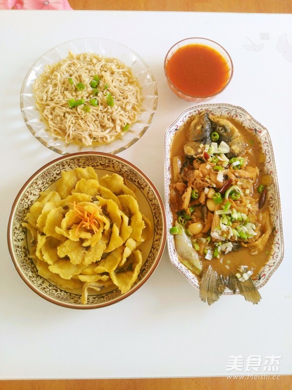 在做牡丹魚片、菊花魚、鍋塌魚片、糖醋魚片的時候,一般只用到魚中段的去骨肉,魚頭、魚尾和魚骨一般都用不到,扔了肯定不行。
