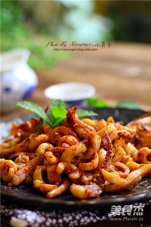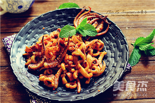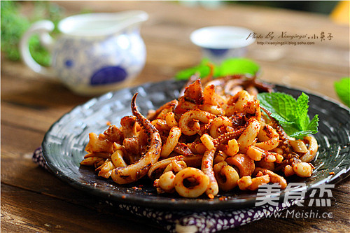 10.魷魚絲受熱卷縮撒上孜然粒
