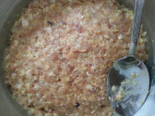 準(zhǔn)備好的白菜豬肉餡。