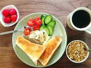 早餐起床半小時(shí)后吃早餐比較合適,成年人的早餐能量應(yīng)為700卡路里左右,谷類為100克左右,可以選擇饅頭、面包、麥片、面條、粥等;適量含有優(yōu)質(zhì)蛋白質(zhì)的食物,比如牛奶、雞蛋或大豆制品,再有100克的新鮮蔬菜和100克的水果。