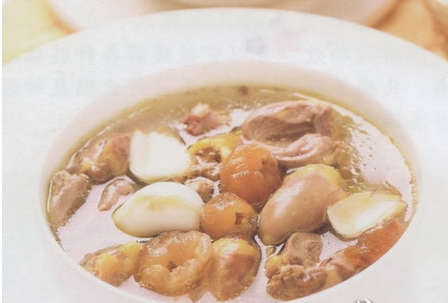 材料:雞心250克,鮮百合40克,桂圓肉30克,食鹽適量。
