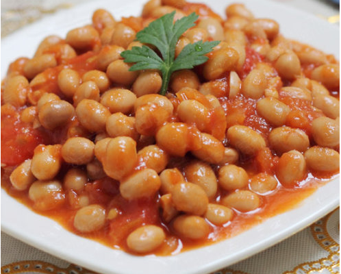 原料:1個番茄、100g黃豆、80g番茄醬、適量鹽、5g糖