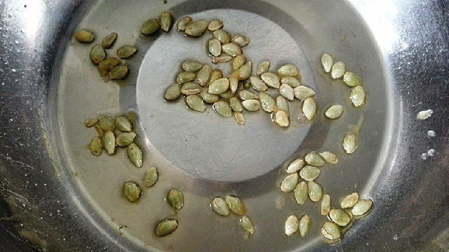 6、將金錢桔按扁,擠出里面的桔子籽,并用刀尖幫助將桔子籽挑出。