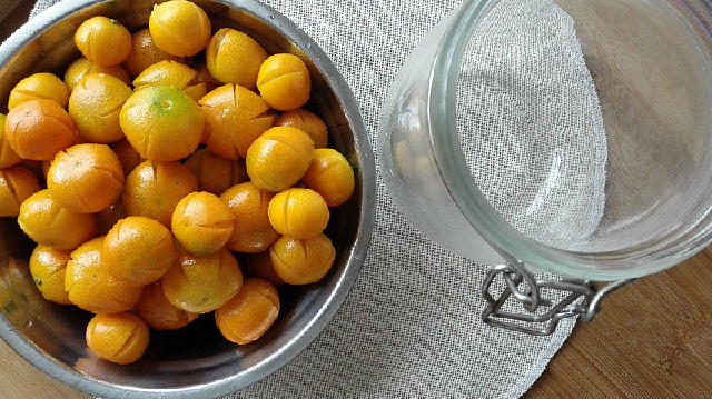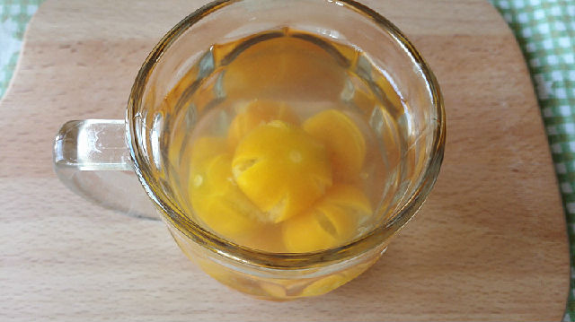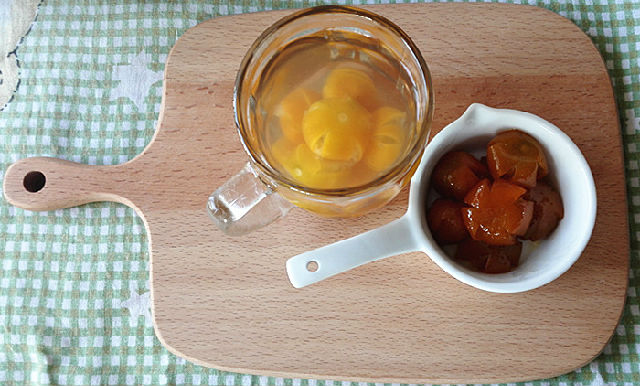 18、想喝的時(shí)候取幾顆金錢桔放入杯子,加溫水沖調(diào),可以用勺子將金錢桔果肉搗碎,這樣喝起來(lái)口感更好,化痰止咳的效果也會(huì)更好。