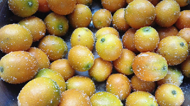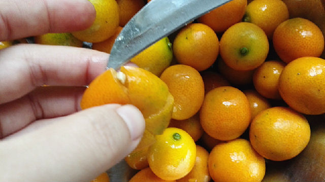 1、在超市或水果店購(gòu)買的金錢桔,這個(gè)時(shí)候正是金錢桔成熟的季節(jié),很適合來(lái)做糖漬金錢桔。