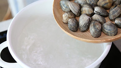 1、水煮至沸騰以后,加入清洗干凈的花蛤,水再次沸騰以后撈出即可。
