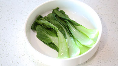 2、油菜撈出以后,過涼水,瀝干水分備用。