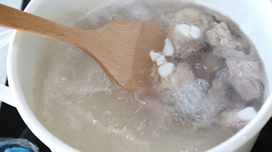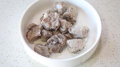 2、焯水過程中需要撇去表面的浮沫,并且要不斷翻動排骨,使其均勻受熱。