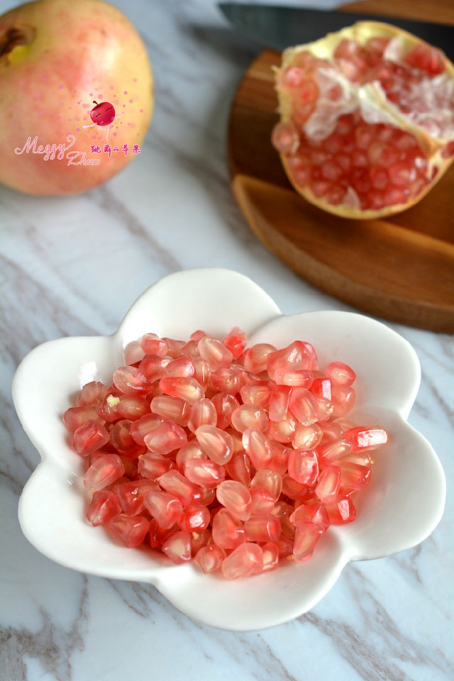 您按照我的方法,只需三刀,就能完整剝出石榴籽,而且顆顆完整。