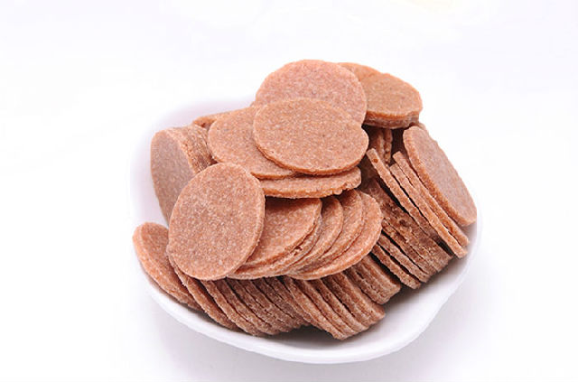 山楂片是一種以山楂為原料制成的食品,有健脾開胃的效果。產(chǎn)品為圓形薄片,色澤鮮艷,厚薄均勻,質(zhì)酥適度。含糖量為85%,還原糖含量為9%,總酸為1.5%,還含有豐富的蛋白質(zhì)、脂肪、鈣、磷鐵和維生素C等營養(yǎng)成分,食后有生津開胃、助消化、降血壓血脂等功效。