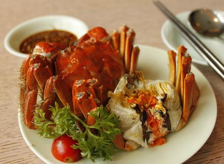 秋季的河蟹個(gè)兒雖不大,但殼薄,肉質(zhì)細(xì)膩而有香味,據(jù)說還分雌雄兩性來吃,聽有廚師說,農(nóng)歷八月母蟹最肥,蟹黃足;農(nóng)歷九月公蟹最香,蟹脂多。不過,吃河蟹的時(shí)間比較短,10月和11月是最好的,而農(nóng)歷9月以吃雌蟹為佳。因此,秋季里的大閘蟹一直是美食家苦求的珍寶,今年戴“白金戒指”的陽澄湖大閘蟹也已成為順德某大酒店的隆重推薦美食。對(duì)于食客來講,可以美美吃上一頓青背白肚、金爪黃毛的陽澄湖大閘蟹,也不失為人生一大樂事。