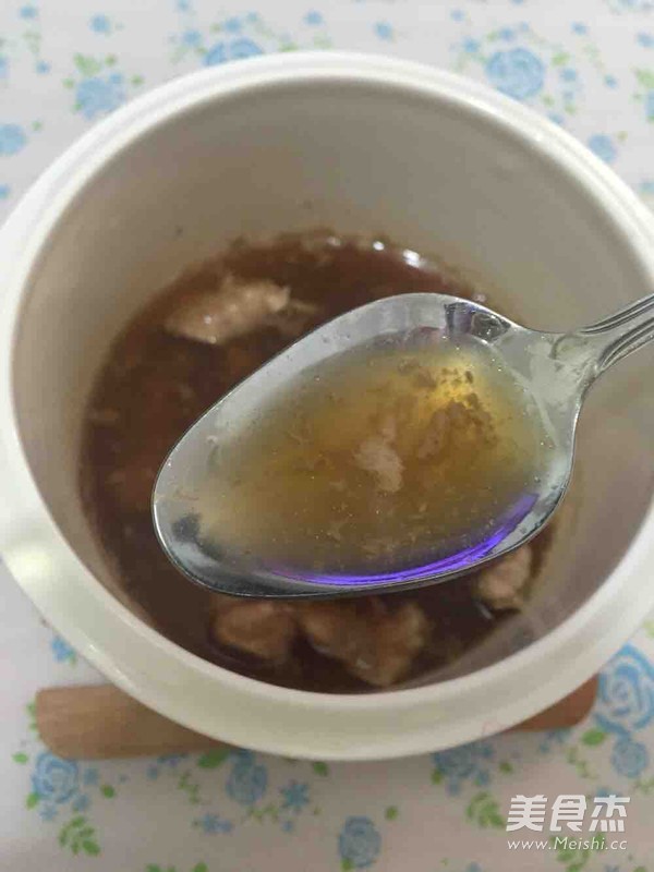 5.把泡溶解的阿膠連水一起倒入燉盅里面
