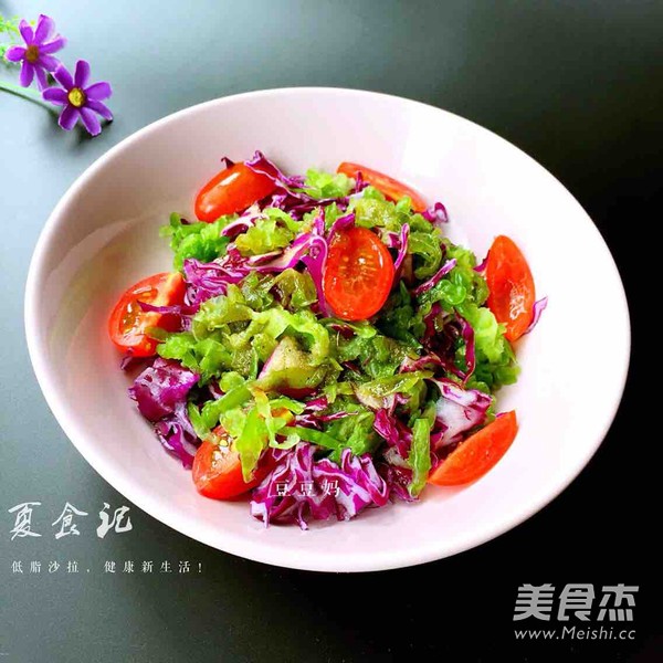 8.櫻桃番茄擺好,淋上沙拉汁就可以了。