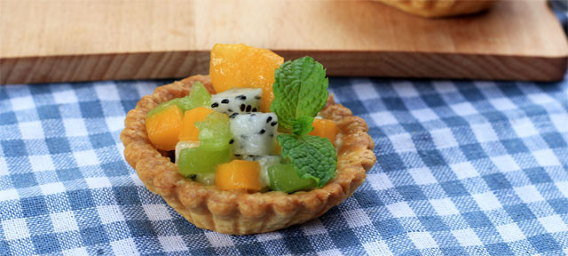 14.每個塔皮里裝入適量水果沙拉即可