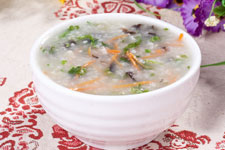 主料:大米85g,糯米15g,海帶絲40g,橘子皮2條。輔料:鹽,味精,香油。