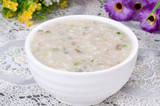 主料:大米50g,糯米30g,豬瘦肉150g,皮蛋2個(gè)。輔料:姜,鹽,胡椒粉,麻油,蔥。