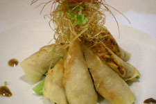 4、鍋里加入適量食用油,油溫大約達到170度后,放入春捲炸至金黃后撈起,用餐巾紙吸掉多餘的油份即可。