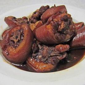 豬尾巴400g 油適量 醬油適量 糖適量 茴香適量 桂皮適量 香葉適量 黃酒適量