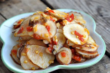 主料:洋姜。輔料:辣椒油,白糖,芝麻油。調(diào)料:食鹽。