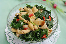 主料:車前草200g,鴨腸200g,枸杞10g。輔料:麻油,鹽,食用堿,白糖,雞精,醋。