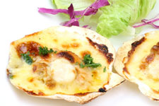 3、烤箱預(yù)熱180度,將制作好的馬郁蘭奶酪涂抹于扇貝上,再灑上剩余的奶酪粉,放進(jìn)烤箱,烤制10分鐘左右即可。