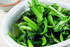 主料:小白菜300克。調(diào)料:食鹽1茶匙,花椒8粒,植物油1.5湯匙。