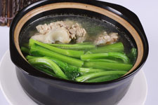 主料:筒骨1根,春菜300g。輔料:干貝10個(gè),干香菇3個(gè),姜片,紅辣椒1個(gè),鹽。
