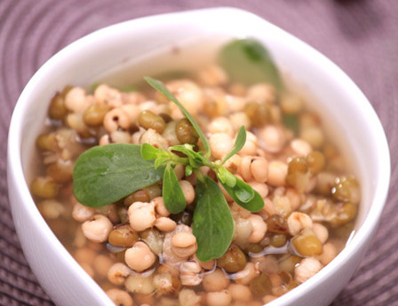 豆子20克,薏仁20克,馬齒莧適量,冰糖適量。