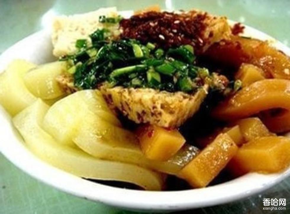 臨夏釀皮子享譽三隴,已成名小吃。積石釀皮和臨夏釀皮是一樣的,它是各族人民非常喜歡的風(fēng)味小吃。上好的釀皮子色澤鮮亮,質(zhì)地柔韌,吃起來咸、酸、香、辣、鮮五味俱全,清爽適口,別具風(fēng)味,特別是盛夏酷暑,一碗釀皮子下肚,精柔爽口,全身清涼,暑氣頓消。