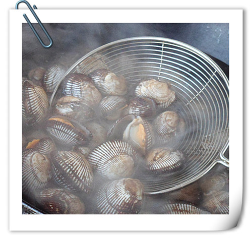 2、麻蛤在沸水中焯燙到開口。