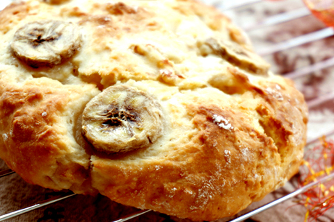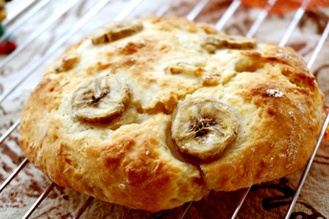 簡簡單單的優(yōu)格香蕉蘇打面包,不需要花費太多的時間,就能解決早餐問題。說是面包,其實也可以說它是個巨號酸奶香蕉司康。既然跟司康沒多大區(qū)別,用中筋粉想必也沒什么不妥。