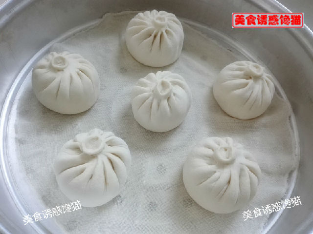 6、包好包子后,放入鋪有濕屜布的蒸籠上,中間要有間隔,因為蒸的時候還會變大。二次醒發(fā)20分鐘(根據(jù)溫度調(diào)整醒發(fā)時間)至二倍大。