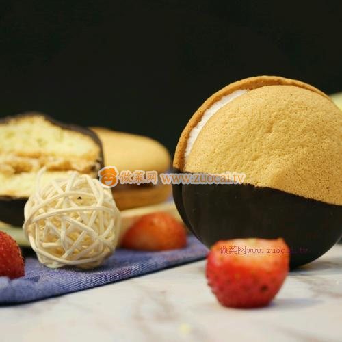 13.13.趁棉花糖融化后,粘上另一半蛋糕,定型