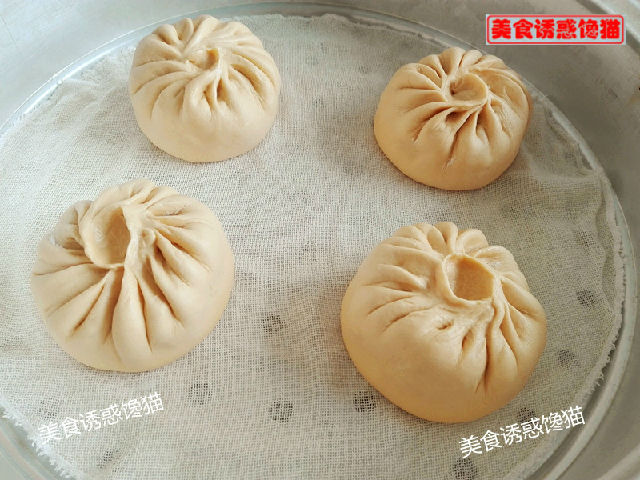 7、將包好的包子放入鋪有濕屜布的蒸籠上,中間要有間隔,因為蒸的時候還會變大。