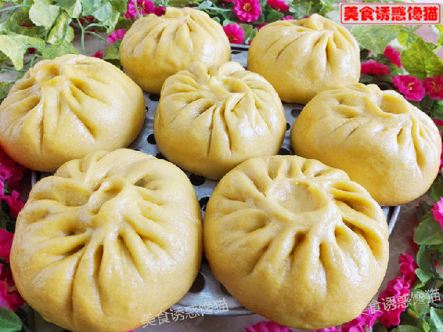 本款南瓜香芋肉包,不放一滴水,完全用南瓜泥揉面,用豬肉、香芋為餡,外皮黃澄澄、金燦燦,口感松軟筋道,不失為一款香甜美味、營養(yǎng)豐富的面點。